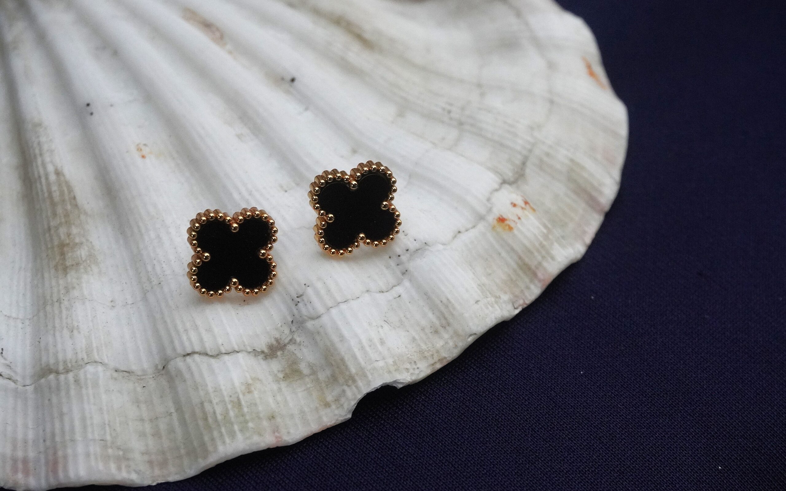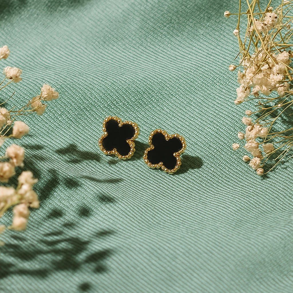 Edgy meets elegant with our Midnight Bloom Studs—your new go-to for that clean girl look with just the right amount of main character energy. The bold black clover shape is outlined in tiny gold bead detailing, giving off vintage glam vibes with a modern twist.