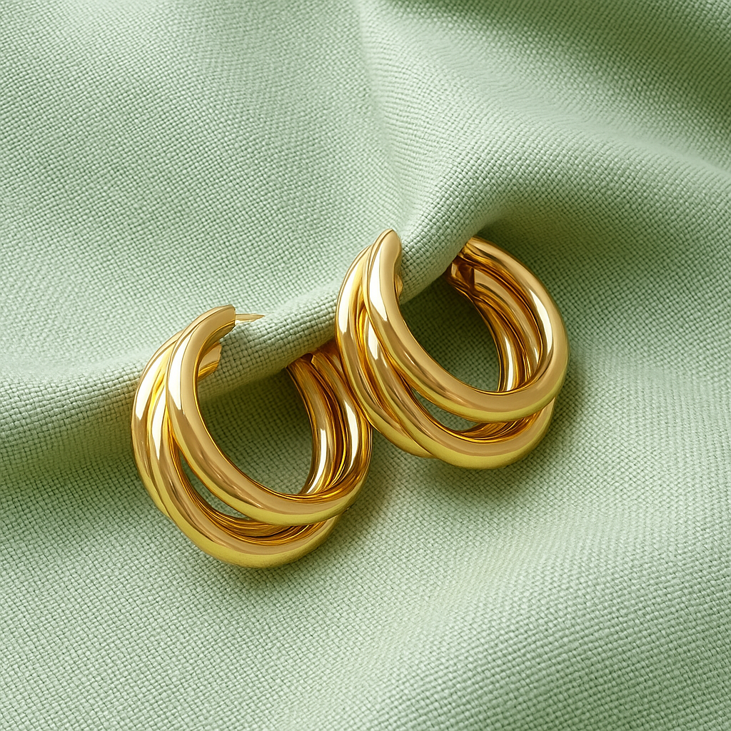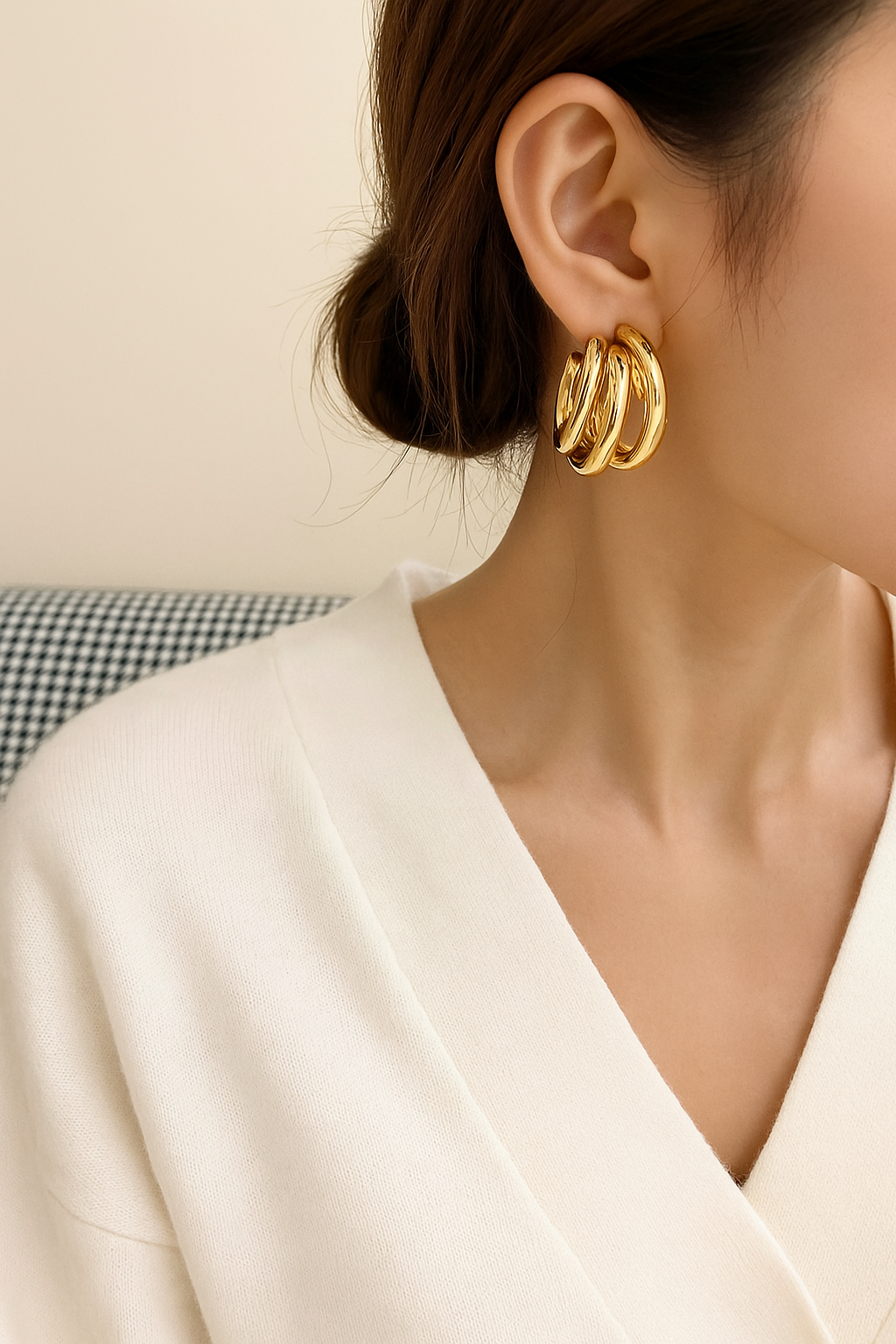 Meet your new favorite gold hoops. These triple-layered beauties serve effortless luxury with a twist of bold. Whether you’re pulling up in athleisure or silk, these earrings get the assignment.